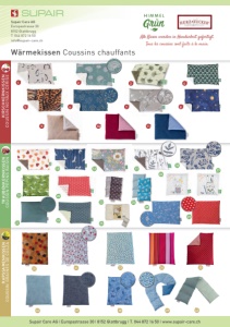 23 14 5 Supair Care AG | Europastrasse 30 | 8152 Glattbrugg | T. 044 872 16 50 | www.supair-care.ch Supair Care AG Europastrasse 30 8152 Glattbrugg T. 044 872 16 50 info @ supair-care.ch TRAUBENKERNKISSEN COUSSIN PÉPINS RAISIN RAPSSAMENKISSEN COUSSIN GRAINES DE COLZA 33 KIRSCHKERNKISSEN COUSSIN NOYAUX CERISE 4 6 22 30 31 24 Alle Kissen werden in Handarbeit gefertigt. Tous les coussins sont faits à la main. 1 2 Wärmekissen Coussins chauffants 17 18 20 19 8 34 21 15 7 16 35 37 36 38 40 39 25 29 27 26 28 3 9 10 11